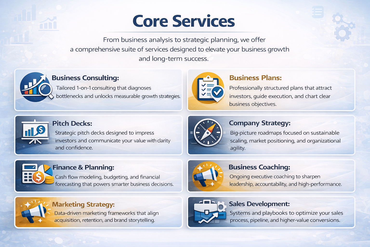 Do It With Us: Implement our strategy created specifically for your business which will accelerate your growth and move you in the right direction.